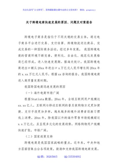 / 关于跨境电商快速发展的原因、问题及对策报告