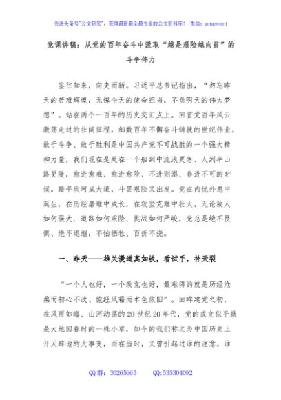 党课讲稿:从党的百年奋斗中汲取“越是艰险越向前”的斗争伟力