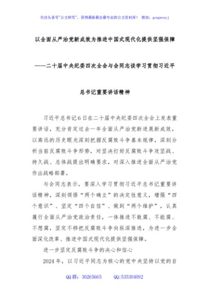 / 以全面从严治党新成效为推进中国式现代化提供坚强保障——二十届中央纪委四次全会与会同志谈学习贯彻习近平总书记重要讲话精神