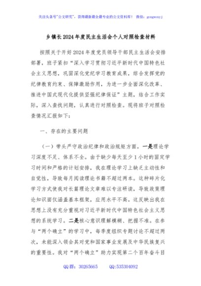 / 乡镇长2024年度民主生活会个人对照检查材料