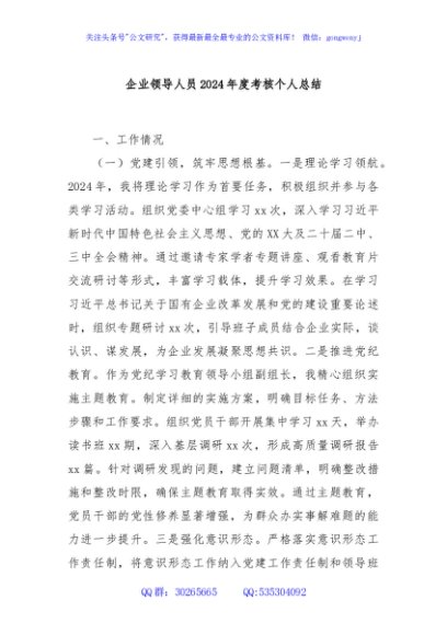 / 企业领导人员2024年度考核个人总结