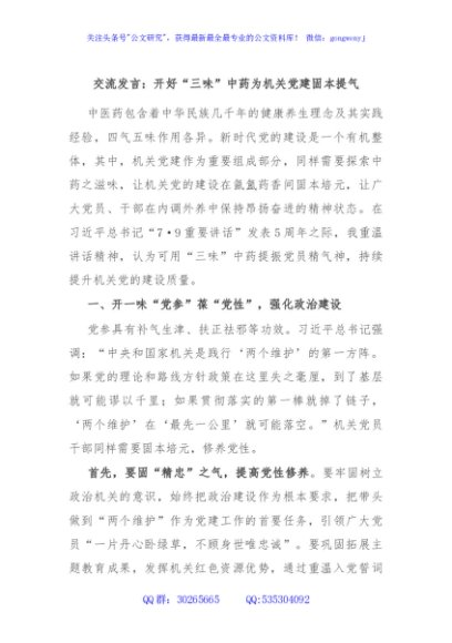 / 交流发言:开好“三味”中药为机关党建固本提气
