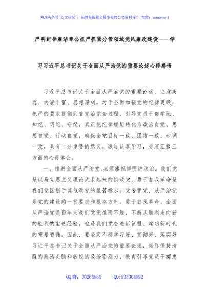 / 严明纪律廉洁奉公抓严抓紧分管领域党风廉政建设——学习总书记关于全面从严治党的重要论述心得感悟