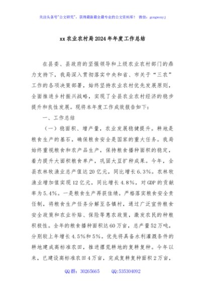 / xx农业农村局2024年年度工作总结