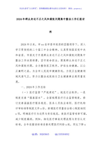 / 2024年群众身边不正之风和腐败问题集中整治工作汇报材料