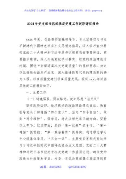 / 2024年党支部书记抓基层党建工作述职评议报告
