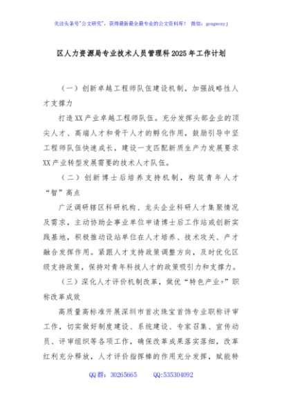 / 区人力资源局专业技术人员管理科2025年工作计划