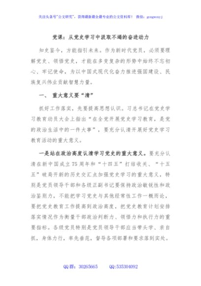 党课:从党史学习中汲取不竭的奋进动力
