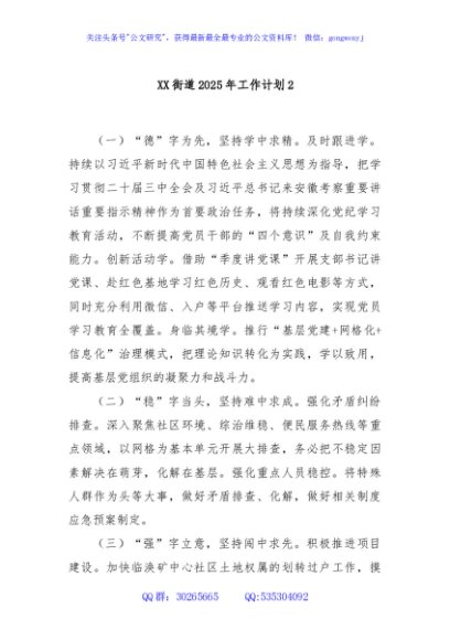 / XX街道2025年工作计划2