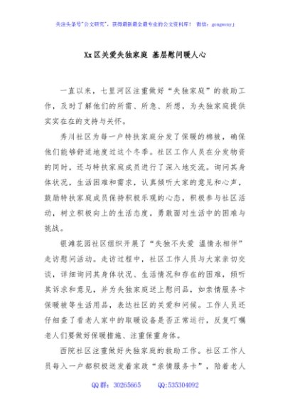 / Xx区关爱失独家庭 基层慰问暖人心
