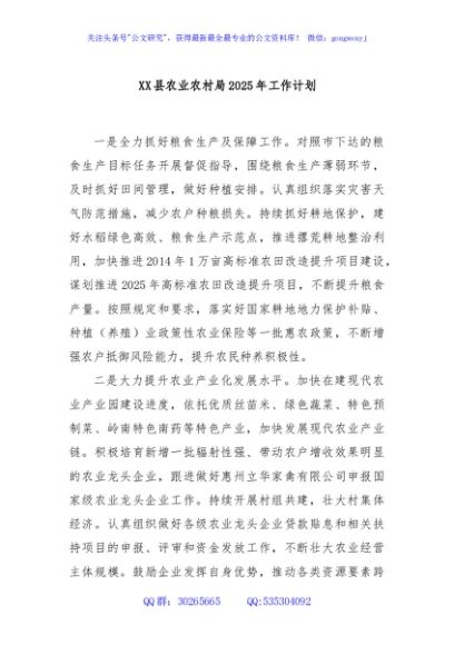 / XX县农业农村局2025年工作计划