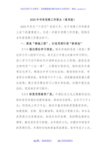 / 2025年市局党建工作要点(通用版)