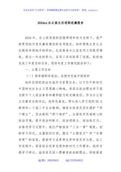 / 2024xx办公室主任述职述廉报告