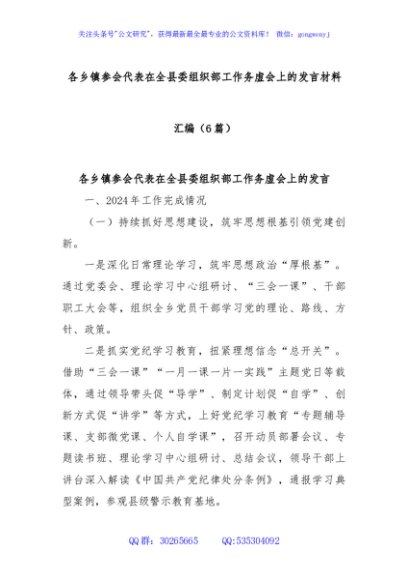 / (6篇)各乡镇参会代表在全县委组织部工作务虚会上的发言材料汇编