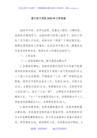 / 驻X村工作队2024年工作总结