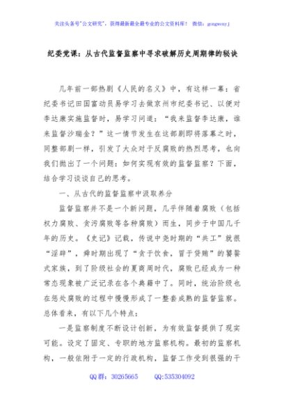 / 纪委党课:从古代监督监察中寻求破解历史周期律的秘诀