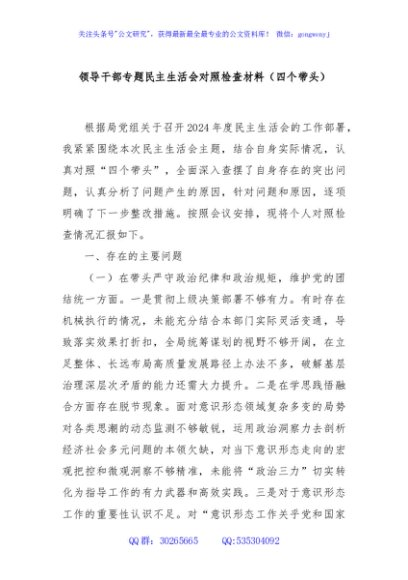 / 领导干部专题民主生活会对照检查材料(四个带头)