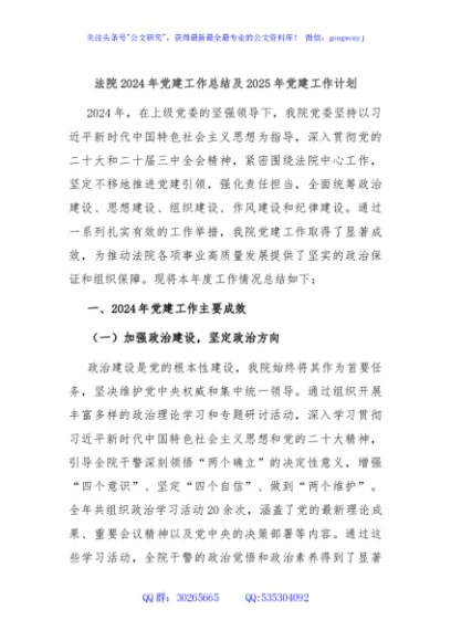 / 法院2024年党建工作总结及2025年党建工作计划