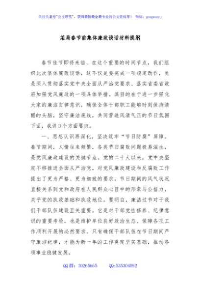 / 某局春节前集体廉政谈话材料提纲