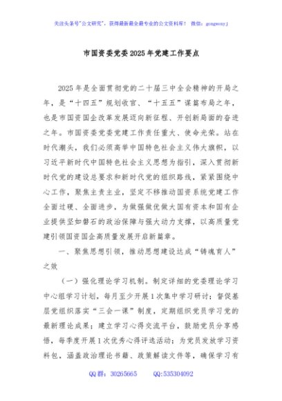 / 市国资委党委2025年党建工作要点