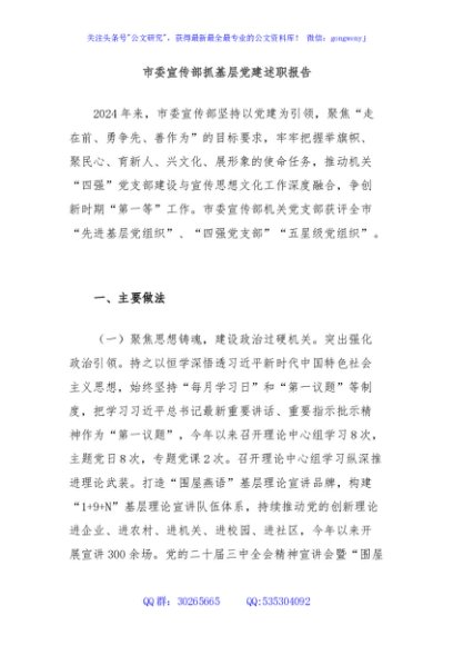/ 市委宣传部抓基层党建述职报告