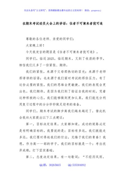 / 在期末考试动员大会上的讲话:往者不可谏来者犹可追