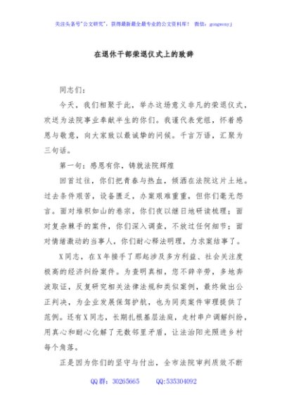 / 在退休干部荣退仪式上的致辞