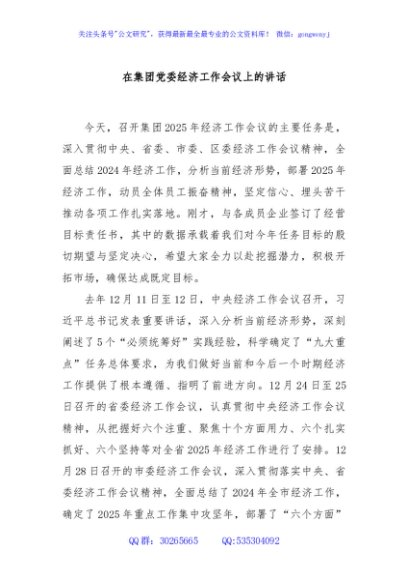 / 在集团党委经济工作会议上的讲话