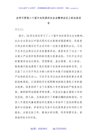 / 在学习贯彻二十届中央纪委四次全会精神会议上的总结发言