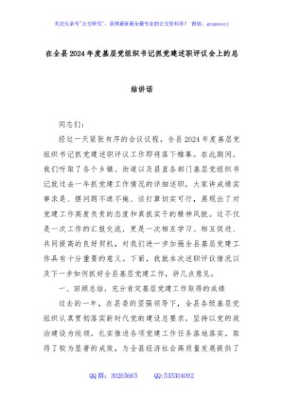 / 在全县2024年度基层党组织书记抓党建述职评议会上的总结讲话