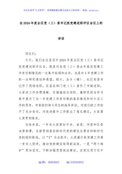 / 在2024年度全区党(工)委书记抓党建述职评议会议上的讲话