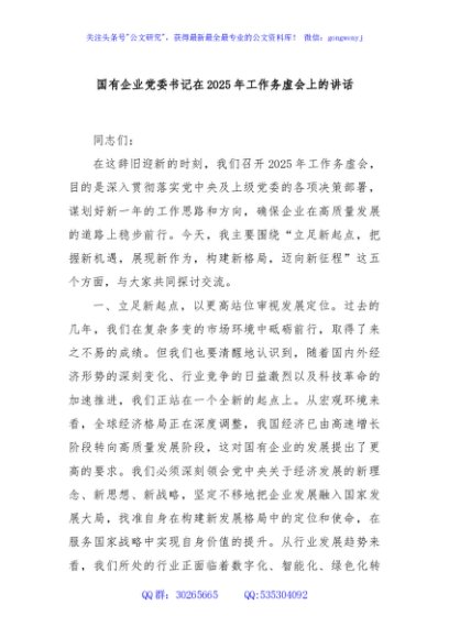/ 国有企业党委书记在2025年工作务虚会上的讲话