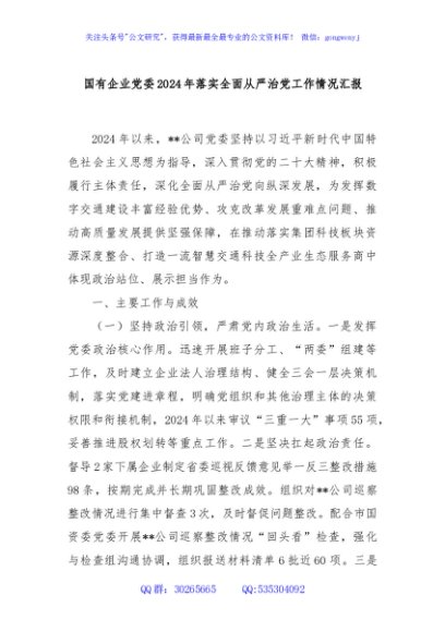 / 国有企业党委2024年落实全面从严治党工作情况汇报