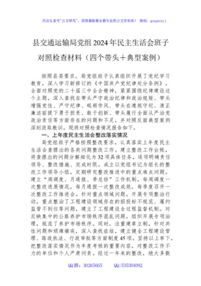 / 县交通运输局党组2024年民主生活会班子对照检查材料(四个带头+典型案例)