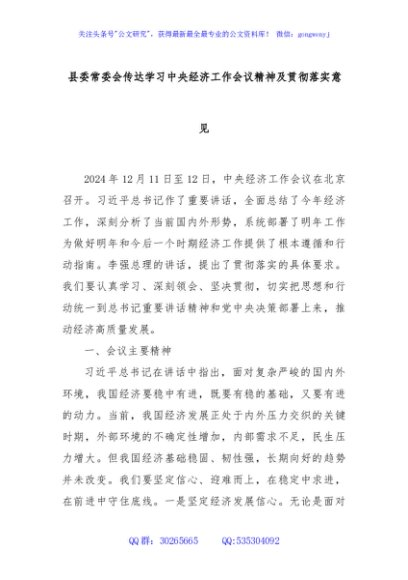 / 县委常委会传达学习中央经济工作会议精神及贯彻落实意见