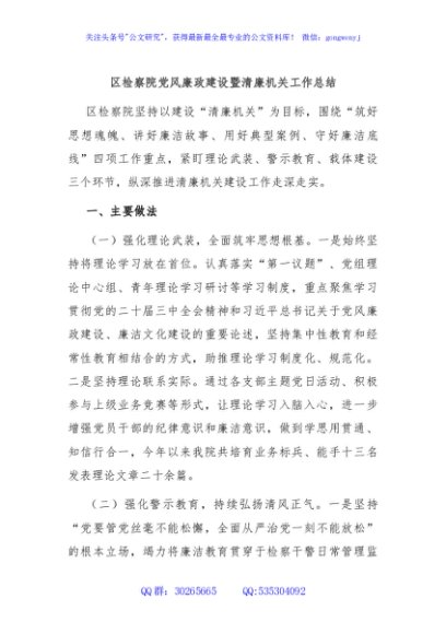 / 区检察院党风廉政建设暨清廉机关工作总结