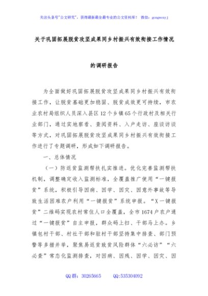 / 关于巩固拓展脱贫攻坚成果同乡村振兴有效衔接工作情况的调研报告