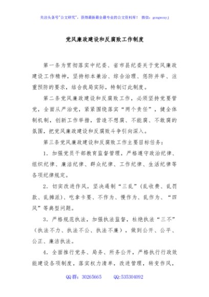 党风廉政建设和反腐败工作制度