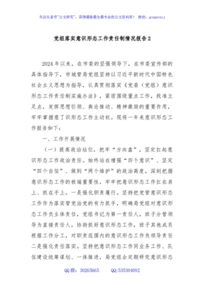 / 党组落实意识形态工作责任制情况报告2