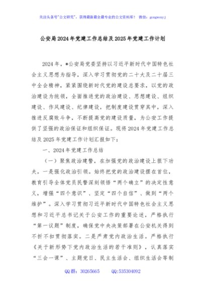 / 公安局2024年党建工作总结及2025年党建工作计划