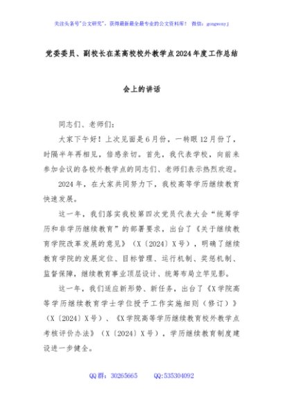 / 党委委员、副校长在某高校校外教学点2024年度工作总结会上的讲话