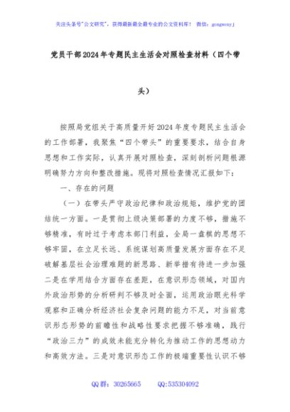 / 党员干部2024年专题民主生活会对照检查材料(四个带头)