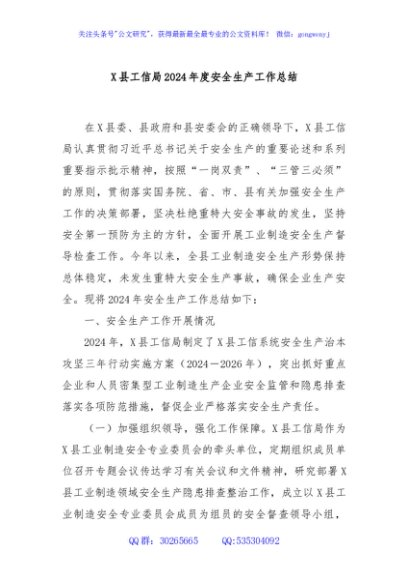/ X县工信局2024年度安全生产工作总结