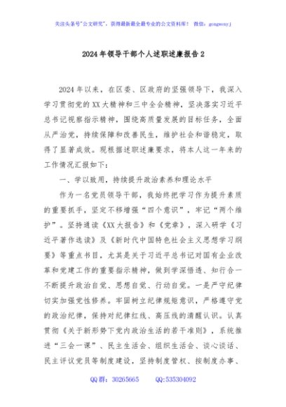 2024年领导干部个人述职述廉报告2