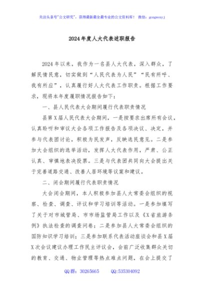 / 2024年度人大代表述职报告