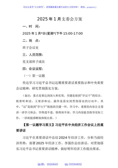 / 01-2025年1月支委会方案