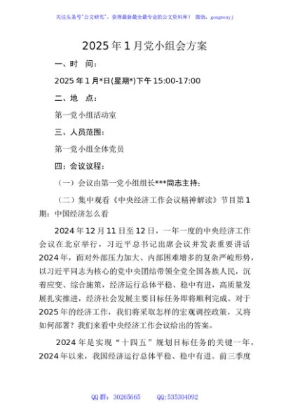 / 02-2025年1月党小组会方案