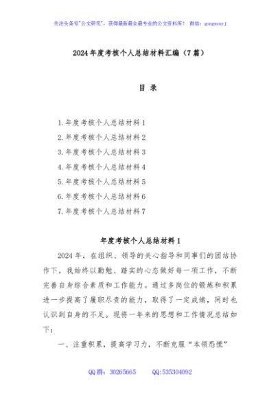 未生成预览图,长按二维码添加 (7篇)2024年度考核个人总结材料汇编 - 公文研究