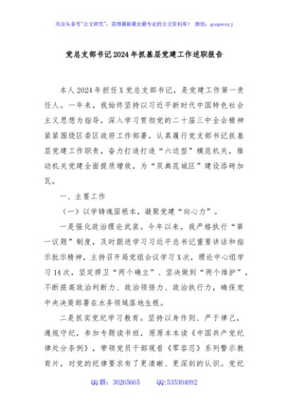 / 党总支部书记2024年抓基层党建工作述职报告
