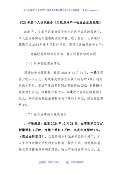 / 2024年度个人述职报告(三级房地产-物业企业总经理)
